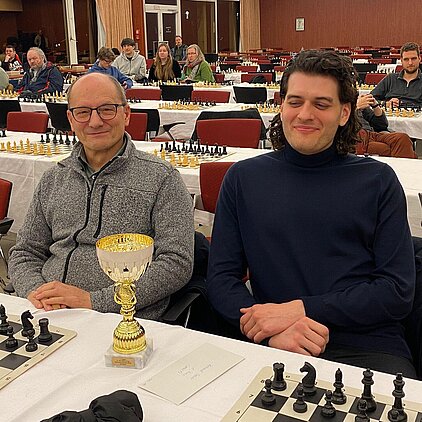 Bei der Siegerehrung waren wir inzwischen bei den Hauptpreisen des AS-Opens angekommen. Die offene Frage war nun, ob die Feinwertung für Richard ausreichen würde. Und das tat sie. Mit einem Buchholzpunkt Vorsprung durfte Richard Schier den Pokal für den Turniersieg entgegen nehmen. Wir haben alle eine tolle Turnierlestung hingelegt und hoffen, dass es auch auf den kommenden Turnieren weiter so gut läuft.